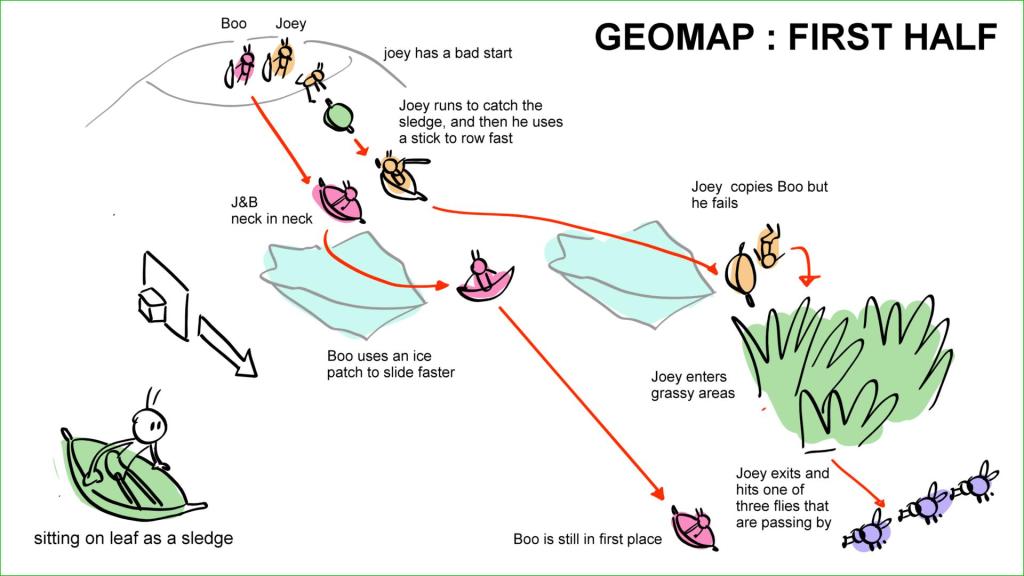 Joey and Boo are doing sled competition on a snow hill area. Property of Moonbug Entertainment