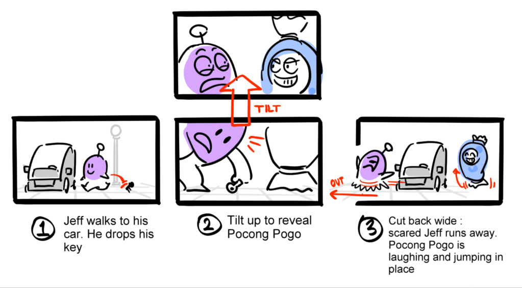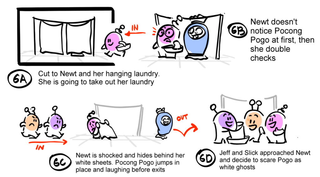 Pogo is pranking his friends by dressing up as a Pocong